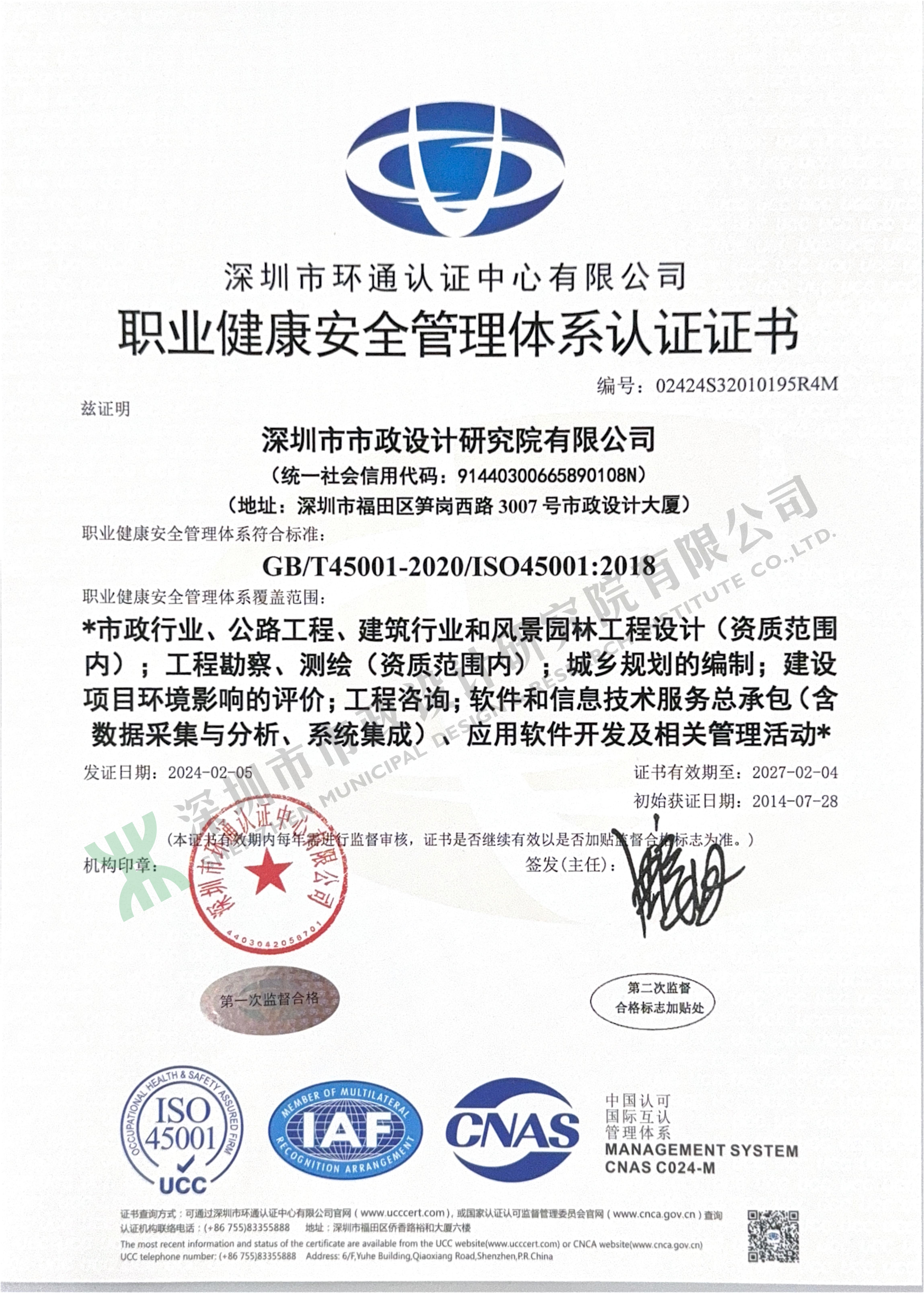 職業(yè)健康安全管理體系認(rèn)證證書